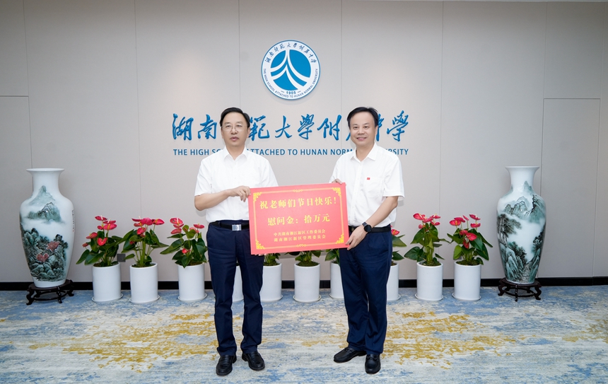 湖南湘江新区党工委委员谭海,湘江新区教育局局长宋晶以及我校在家校领导参加慰问。
