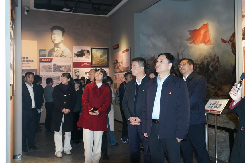 党员们观看了沉浸式红色展演,演出通过艺术形式再现水口山工人从受压迫到奋起抗争的革命历程。随后参观了《水口山工人运动历史陈列》《耿飚生平业绩陈列》和《水口山矿冶史陈列》三大展区,深入了解 1922 年工人大罢工事迹、耿飚同志革命生涯及千年矿冶历史。