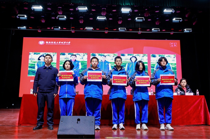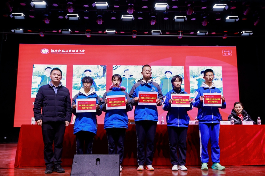尤为温暖的是,本次活动设立了专项励志奖学金,资金全部来自湖南师大附中八年级学生家长的自愿捐赠。在结对资助仪式上,20名张家界市民族中学优秀学生每人获赠1000元励志奖学金。这笔凝聚着附中学子爱心的励志奖学金,不仅给予孩子们切实的经济支持,更传递出跨越地域的鼓励与期盼。
