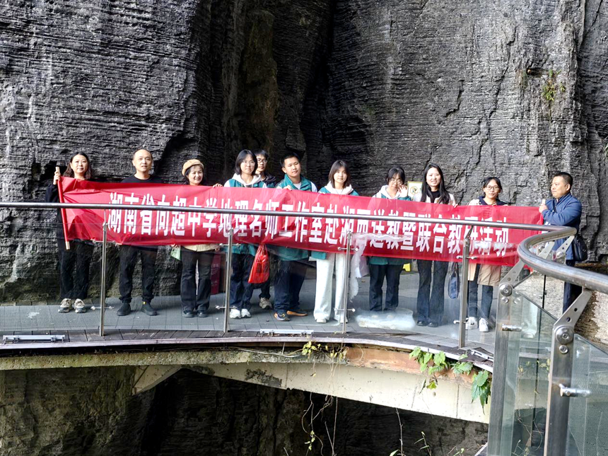 11月29日下午和30日上午,工作室成员赴湘西世界地质公园德夯大峡谷和古丈红石林开展实地考察合和实践课程开发研究,结合区域喀斯特地貌特征,现场研讨如何将乡土资源融入高中地理实践课程,优化课例设计的真实性与探究性,切实提升学生综合思维与地理实践力。