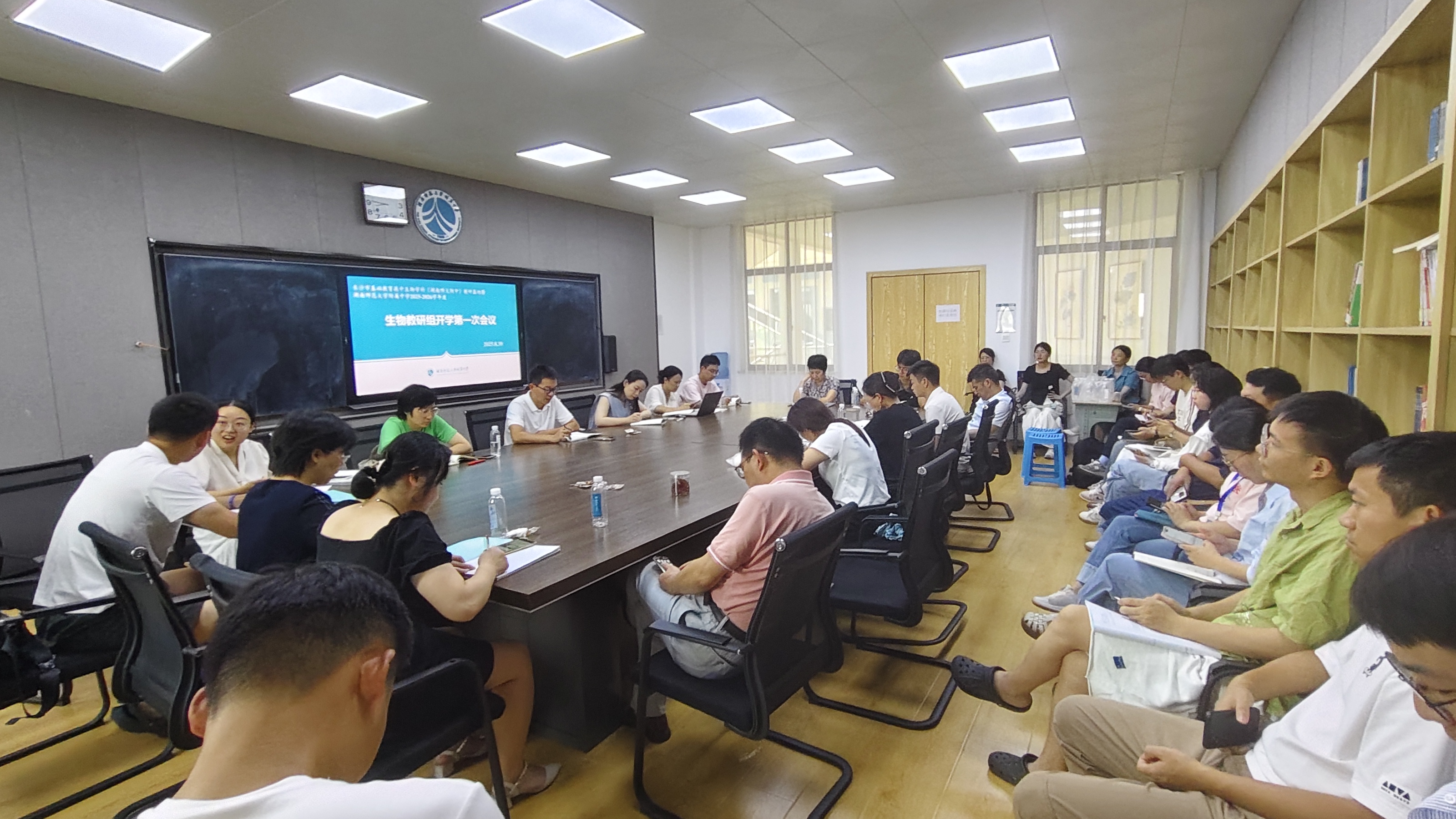为了进一步明确新学年工作方向,提高生物学科教学质量,8月30日上午,湖南师范大学附属中学生物教研组在之谟图书馆教师研修室五召开新学年工作会议。本次会议由教研组副组长周娈老师主持,生物教研组全体成员参加。