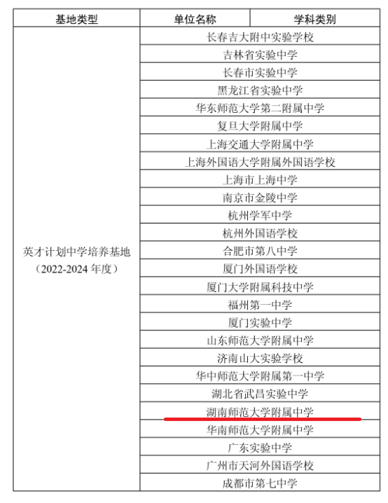 全国英才计划培养基地学校选拔工作于2021年启动。根据《关于开展英才计划培养基地建设工作的通知》(科协青发〔2021〕48号)及《英才计划培养基地建设总体方案(试行)》,全国英才计划管理办公室对各省级单位推荐的培养基地建设单位进行了评审,认定了北京大学等39所高校为英才计划高校学科培养基地,北京师范大学附属实验中学等39所中学为2022-2024年度英才计划中学培养基地。