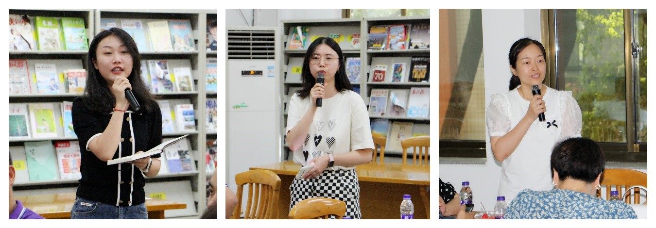 会议的第二阶段,文馨老师作为新进教师代表发言。作为一名优秀校友,如今学成归来任教,对母校的爱与情感自是深种于心。文老师立足校名,挖掘出了“师大附中”四个字背后更为深层次的内涵,分享了她心中所理解的附中精神。随后,教研组副组长邓慧老师作为第三届青年名师培养对象,就青年教师成长进行了主题发言。她从教学、教育、教研三大板块出发,结合自己在附中的十年专业成长之路,强调了独立思考、站稳三尺讲台,以心换心、立足育人之本,勤于思考、积极参与教学研究的重要性。英语组教研员胡玲玲老师就全力推进打造研究型高中,认真领会校长开学工作报告会议精神等方面,点明了问题即课题,教、学、研三位一体这一意义深远的学术精神,并就进一步推进教研工作进行了具体的安排。