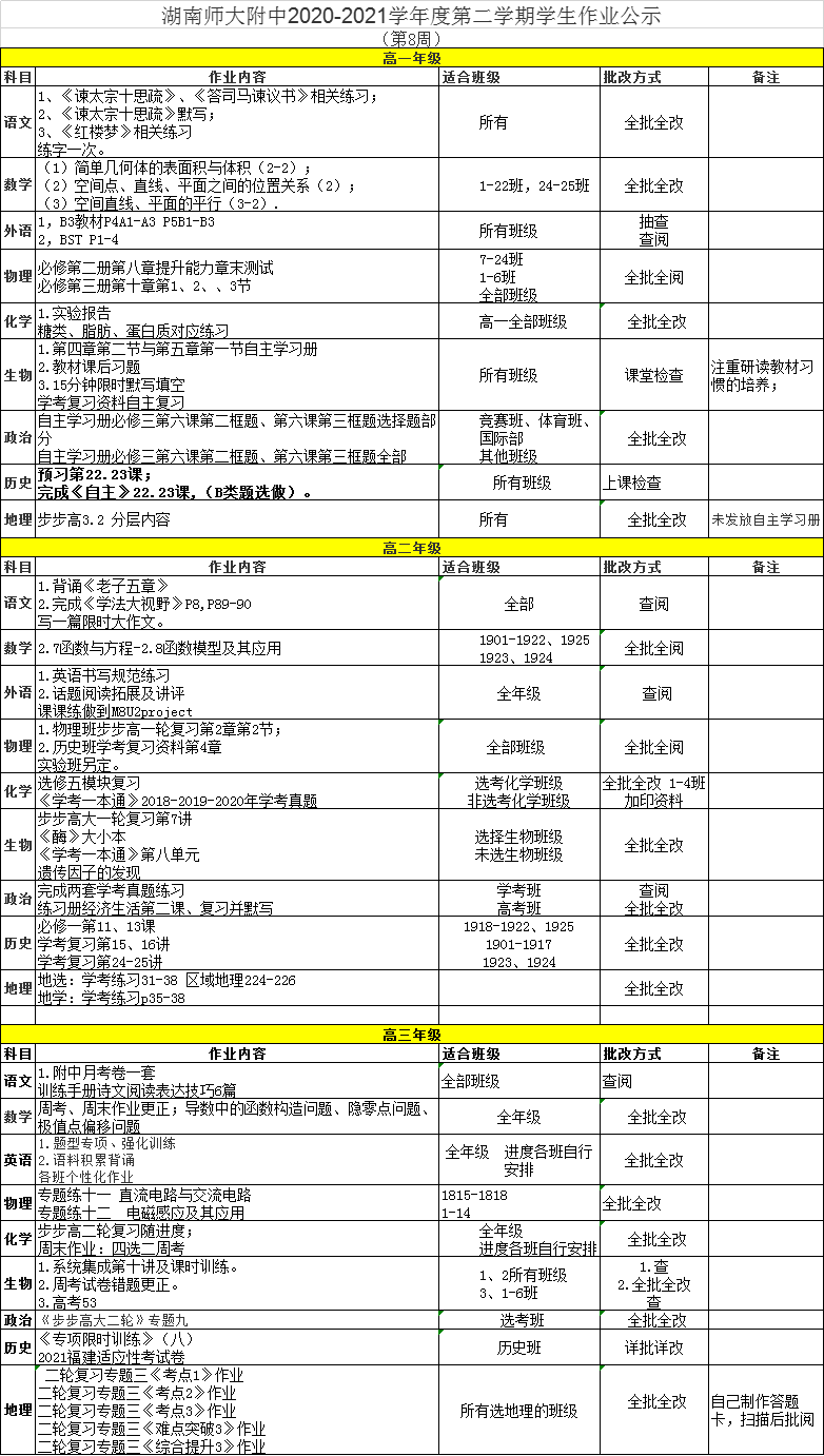 课程建设 教学资讯 课堂教学 学科竞赛 作业公示 校本课程 高考专栏 20-21-2作业公示NO8 发布:课程与教学处 来源:课程与教学处 日期:2021-09-14 人气:分享到: 上一篇:20-21-2作业公示NO7 下一篇:20-21-2作业公示NO9 通知公告 更多 湖南师范大学附属中学基建工程专 关于开展2024年事业单位工作人员 关于开展2023-2024学年度科研成果评 湖南师大附中2024年教育教学成果 湖南师范大学附属中学2024年秋季 湖南师范大学附属中学2024年暑假 最新动态 更多