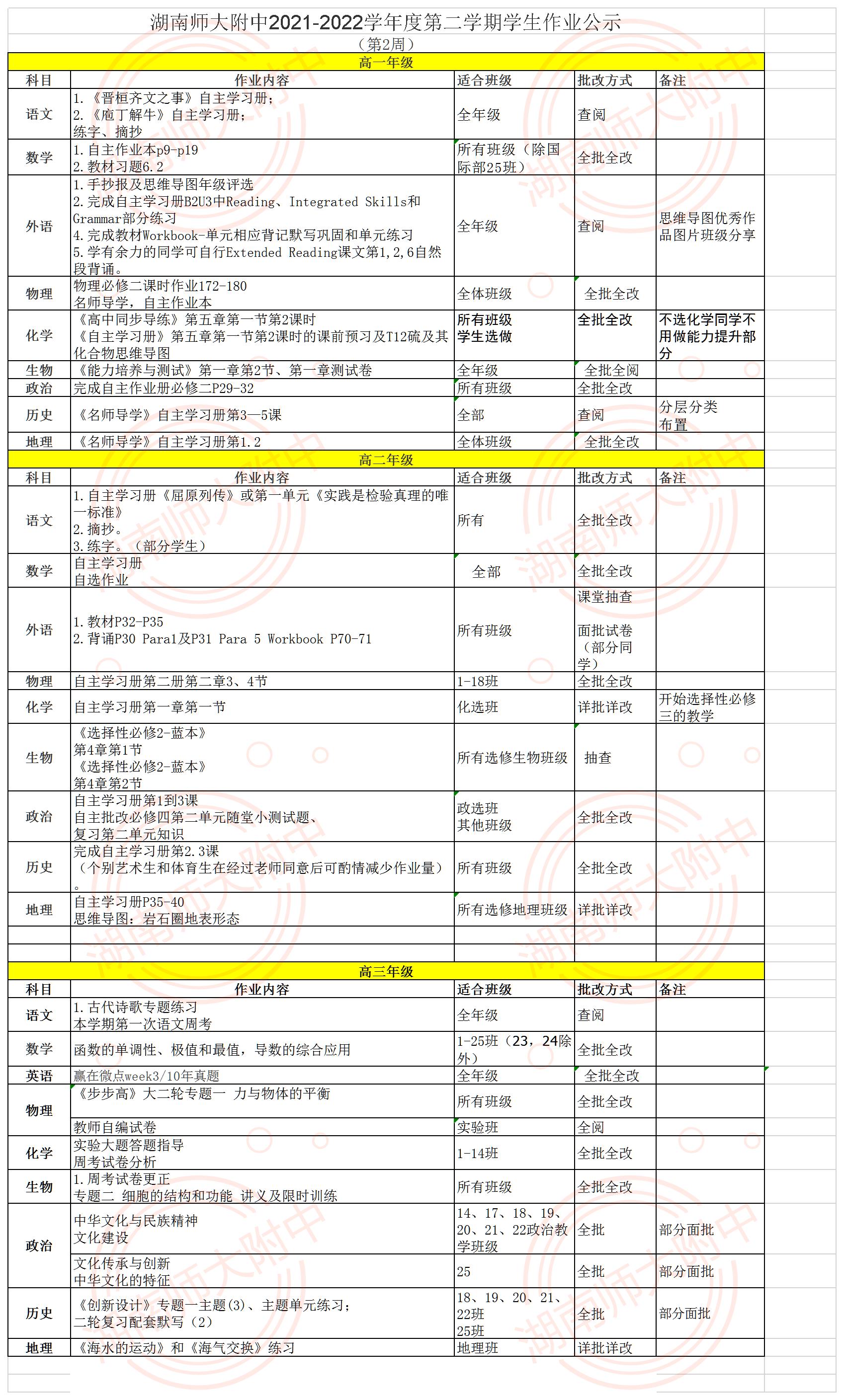 课程建设 教学资讯 课堂教学 学科竞赛 作业公示 校本课程 高考专栏 21-22-2作业公示02 发布:教学与课程处 来源:课程与教学处 日期:2022-02-23 人气:分享到: 上一篇:21-22-2作业公示01 下一篇:21-22-2作业公示03 通知公告 更多 湖南师范大学附属中学基建工程专 关于开展2024年事业单位工作人员 关于开展2023-2024学年度科研成果评 湖南师大附中2024年教育教学成果 湖南师范大学附属中学2024年秋季 湖南师范大学附属中学2024年暑假 最新动态 更多