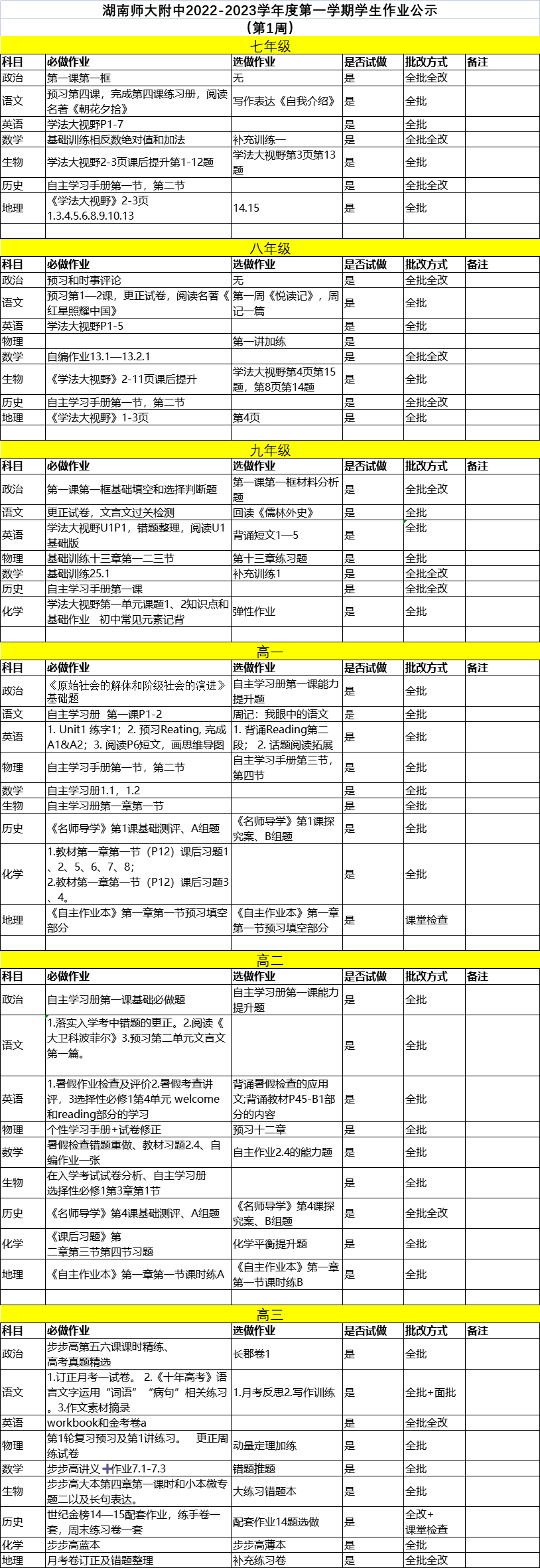 课程建设 教学资讯 课堂教学 学科竞赛 作业公示 校本课程 高考专栏 22-23-1作业公示01 发布:教学与课程处 来源:课程与教学处 日期:2022-08-29 人气:分享到: 上一篇:21-22-2作业公示19 下一篇:22-23-1作业公示02 通知公告 更多 湖南师大附中2025-2026学年度第一学 湖南师范大学附属中学2025级新生 湖南师范大学附属中学大泽湖校区 2025年湖南省基础教育教学成果奖 湖南省教育厅关于开展2025年湖南 湖南师范大学附属中学2025级新生 最新动态 更多