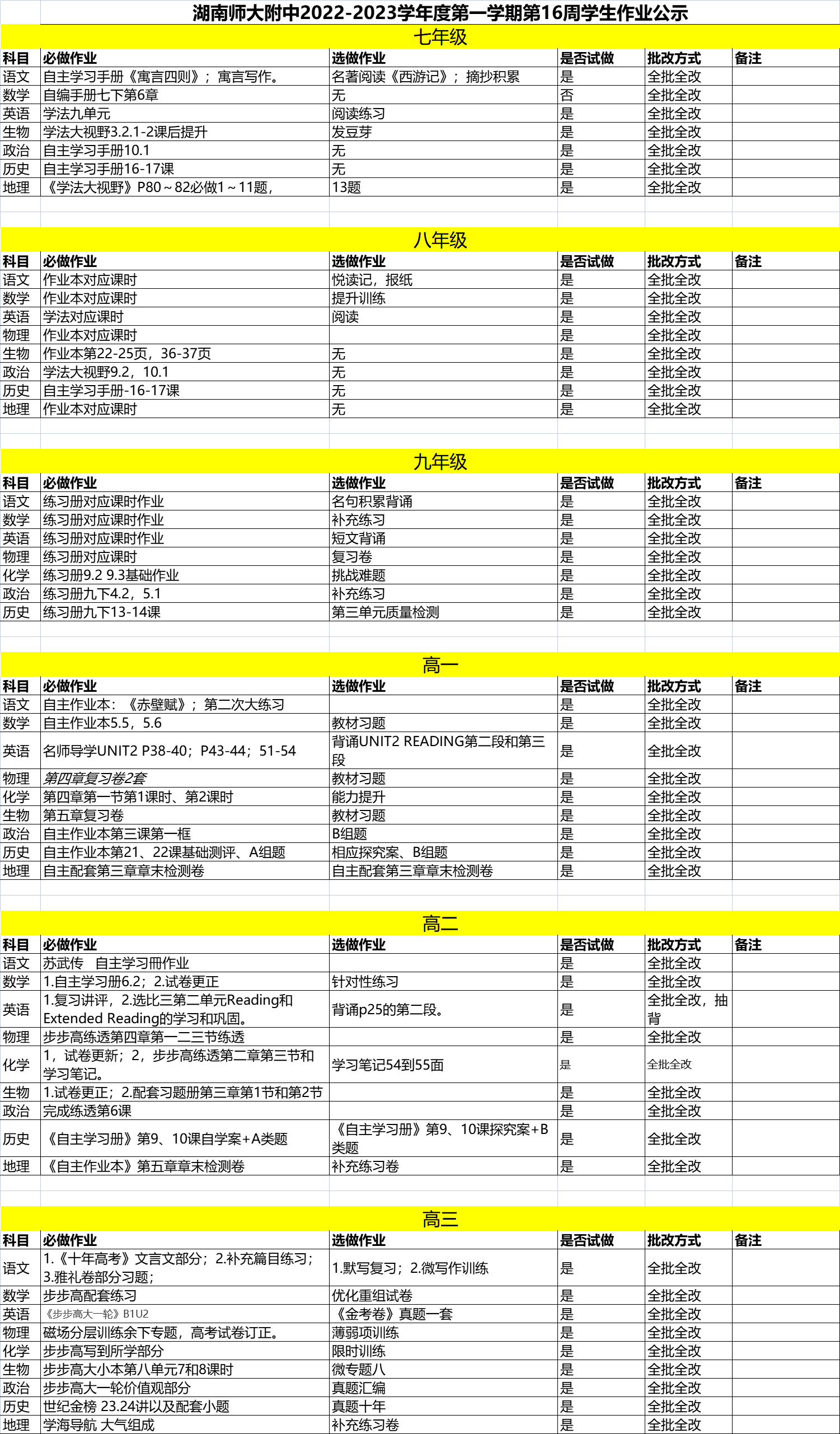 课程建设 教学资讯 课堂教学 学科竞赛 作业公示 校本课程 高考专栏 22-23-1作业公示16 发布:教学与课程处 来源:课程与教学处 日期:2023-09-12 人气:分享到: 上一篇:22-23-1作业公示15 下一篇:22-23-2作业公示01 通知公告 更多 湖南师范大学附属中学2024年度废 湖南师范大学附属中学化学实验室 湖南师范大学附属中学出国(境) 关于开展2024年暑假教科研论文评 湖南师范大学附属中学2024年暑假 关于申报“十四五”课题2024年度 最新动态 更多