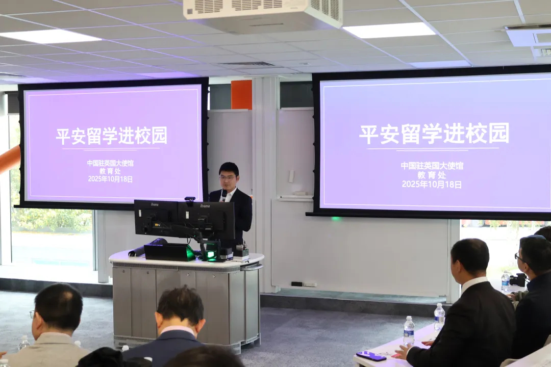 随后,驻英使馆教育处李宇老师带来“平安留学”专题讲座,结合实际案例,讲解电信诈骗、租房安全与心理健康等问题,提醒大家守护身心安全,理性应对挑战。