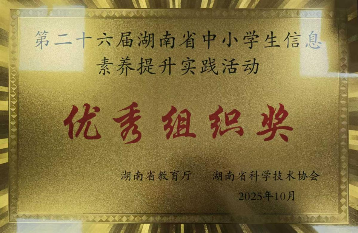 近日,第二十六届湖南省中小学生信息素养提升实践活动结果揭晓。我校机器人竞赛团队选派的10名学生全部获奖,获省级一等奖5人、二等奖5人,学校获评“优秀组织奖”。