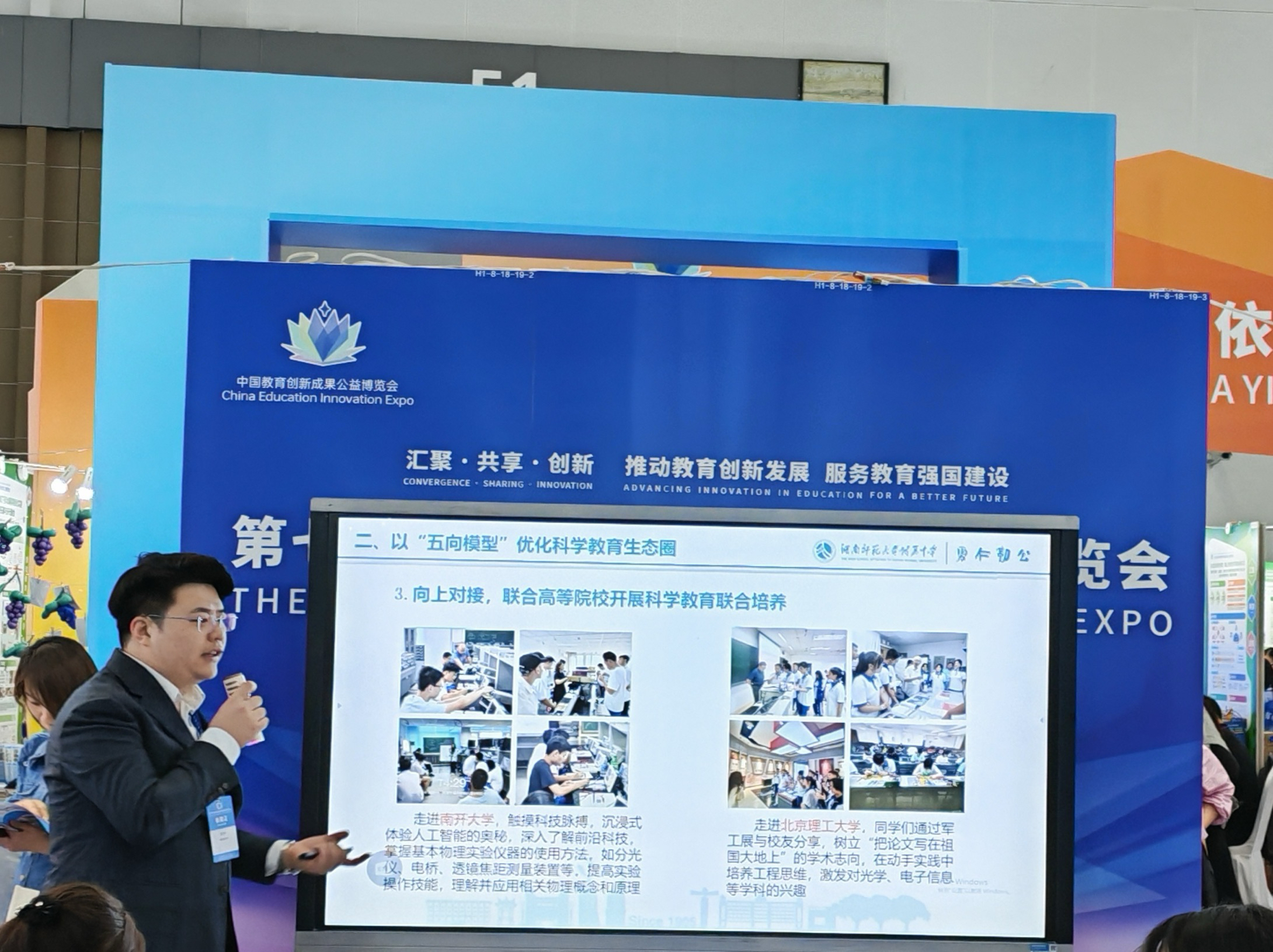 近年来,我校高度重视科学教育,先后荣获全国首批中小学科学教育实验校、全国英才计划十周年优秀学校等国家级科学教育荣誉。我校“五向模型”引领科学教育生态系统创新实践指出:当前中小学科学教育蓬勃发展,但普遍存在三大脱节问题:教学浅层化导致课内外科学教育脱节,学段割裂造成大中小衔接不畅,协同不力引起家校社育人断层。针对这些问题,湖南师大附中依托大学附中、集团化办学、人才共育基地等优势,强化资源联结,聚焦科学素养培养,创设“五向模型”,构建“学校主阵地+社会大课堂+网媒新天地”的科学教育生态系统,取得了显著的育人成效。“五向模型”通过“向内挖潜、向下衔接、向上对接、向外连接、向网链接”这五大路径,构建了全链条科学教育生态系统。未来,学校将继续深化科学教育实践,为培养创新人才提供可复制的“附中方案”。为期三天的第七届中国教育创新成果公益博览会在广东珠海国际会展中心落下帷幕。本届教博会由北京师范大学主办,以“汇聚·共享·创新——推动教育创新发展,服务教育强国建设”为主题,集中展示1386项教育创新成果,举办57场高端论坛、1000余场工作坊,吸引近10万人次现场参与,线上观看量突破300万,充分展现了新时代中国教育高质量发展的蓬勃气象。
