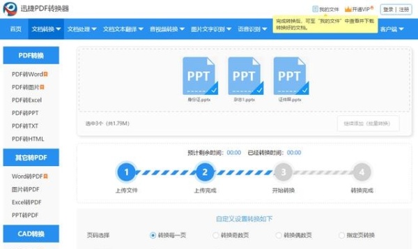 想要批量将多个PPT文件同时转为图片的话,我们可以借助一个工具,像【迅捷PDF转换器在线版】就可以做到,而且我们不用下载软件,直接在网页上就可以进行转换了!