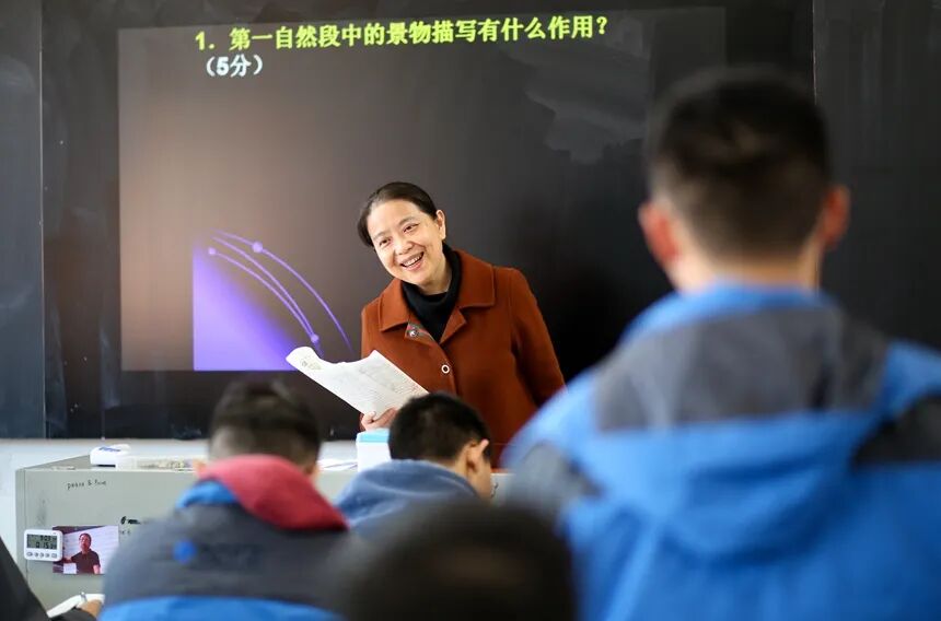 说实话,我第一次见到陈老师的时候,完全猜不出她的年龄。原因无他,陈老师站在讲台上的时候,实在是浑身满溢着年轻人蓬勃的活力气息。她常说自己只要站在讲台上便忘记了年龄。同时她的课堂又带有岁月给予的独特温和感与亲切感,带领着我们降落在语文的温床里。电教委员每节语文课前都会自觉打开陈老师的邮箱,准备接收新课件,“陈老师肯定又修改了课件”成为我们心照不宣的共识。陈老师常常笑称每天除了吃饭睡觉、上课改作业,都在改课件。