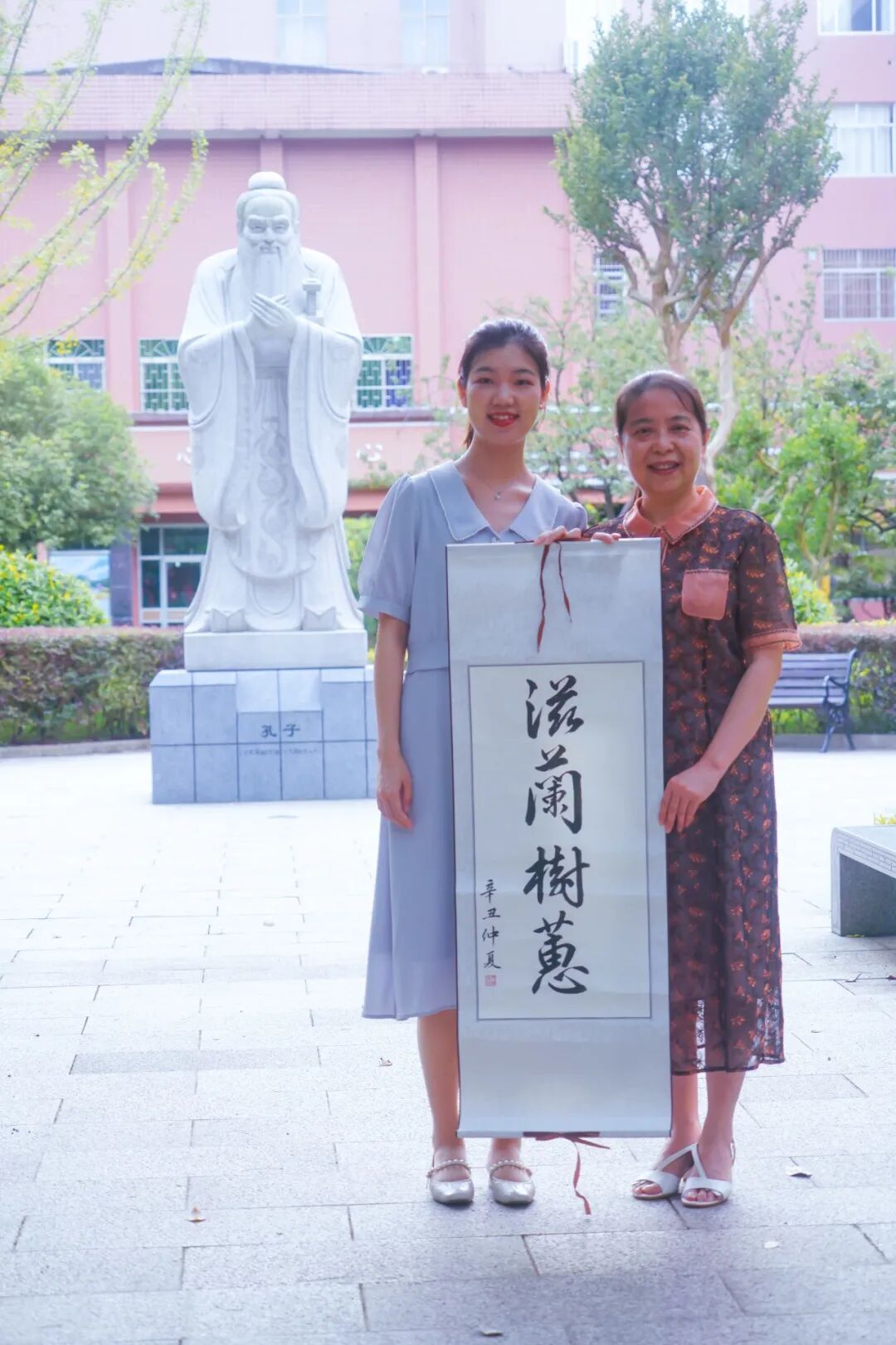 若有幸在来校或放学时遇见陈老师,你总能看见她拎着一个鼓囊囊的、快有她半个人高的布袋。我们后来才知道,为了确保答疑准确无误和方便查证资料,她每天都将所有的初高中教材和教案带来,放学时又带回家,以便于备课。——1920班 李彦瑾
