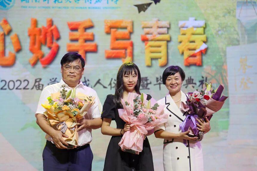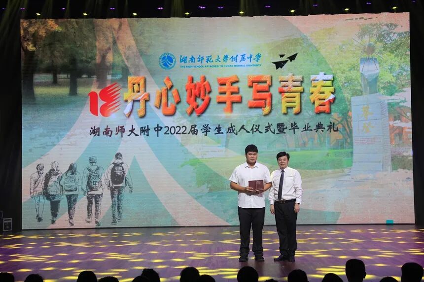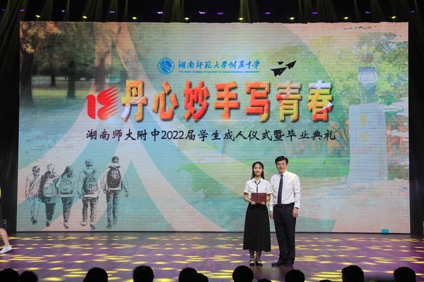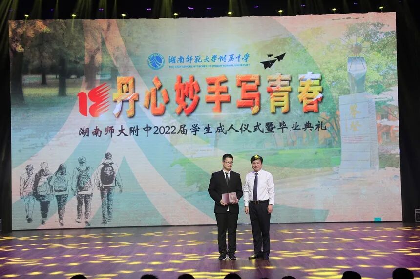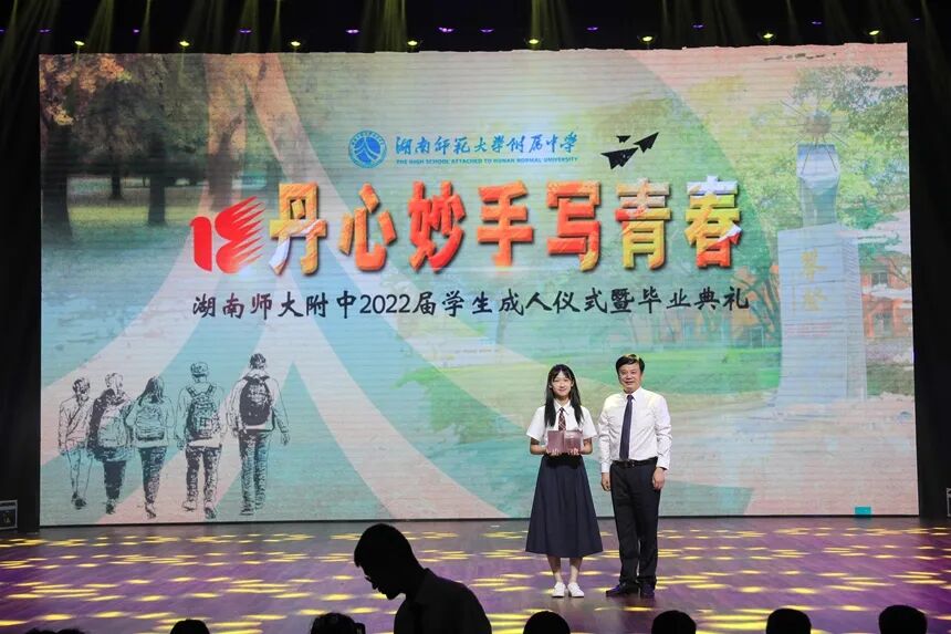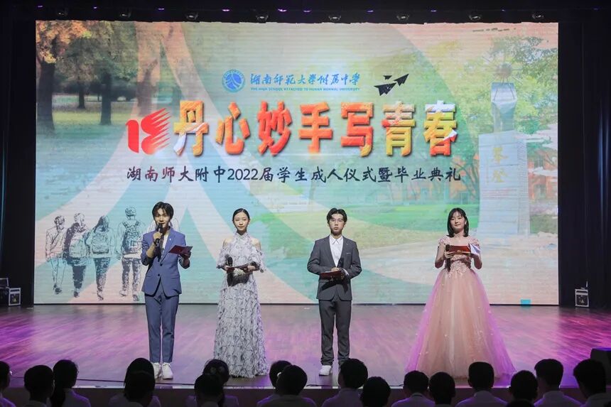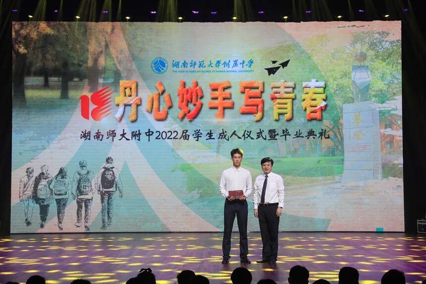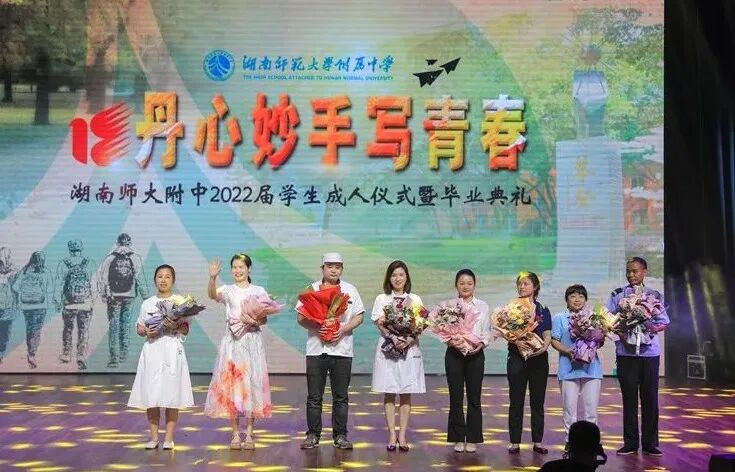 6月23日上午九点,湖南师大附中2022届“丹心妙手写青春”学生成人仪式暨毕业典礼,在学生活动中心盛大开幕。出席本次盛会的领导、老师有:校长谢永红,党委书记黄月初,副校长陈迪勋,纪检书记李春莲,副校长苏建祥,党委委员、湖南师大附中星沙实验学校校长陈胸怀。同时我们邀请了2020年国家杰出青年获得者、山东大学教授、96届高182班李盛英,和2021年国家杰出青年获得者、北京大学教授、02届吕华二位杰出校友作为特别嘉宾;学堂坡社区党总支书记、主任余海艳。活动由2022届学生何宜洛、宋善炎、张祖凤、吴柯岑主持。