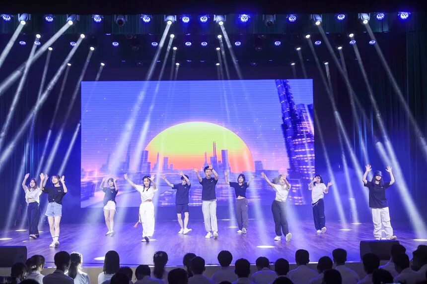 由2022届教师、家长、学生带来的节目串烧《你我盛夏》将会场气氛推向高峰。在活力四射的歌舞表演中,第一篇章结束。