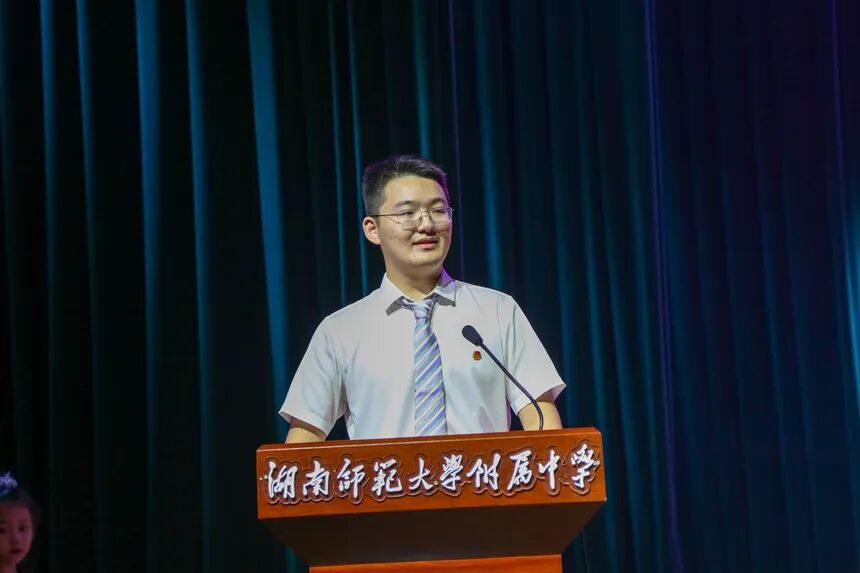 接下来,谢永红校长的致辞,以谆谆的教诲、恳切的言辞和深挚的关怀亲切寄语2022届的毕业生们,为正值青春的少年们指明了奋斗的方向。“你们生逢其时、重任在肩,作为一名附中人,要始终牢记‘公勤仁勇’的校训,在风云变幻的时代里守住为国为民的初心,在精力充沛的年华中练就过硬本领,做德才兼备、知行合一的新时代中国青年,在时代舞台上施展才干、担当大任,书写无悔青春的奋斗篇章。”