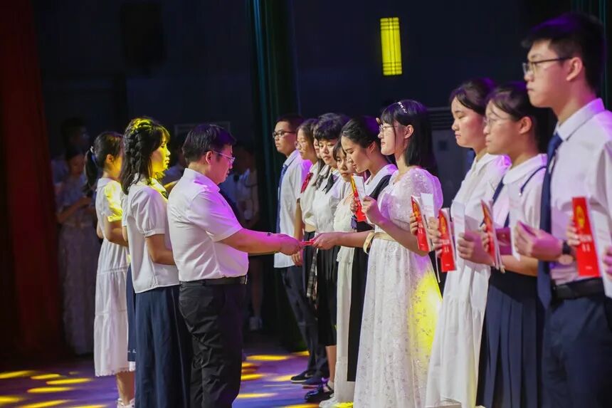 首先,党委书记黄月初把庄严的宪法与习近平总书记《在庆祝中国共产主义青年团100周年大会上的讲话》单行本赠与学生,祝愿他们以成人的姿态出发开启新篇章。