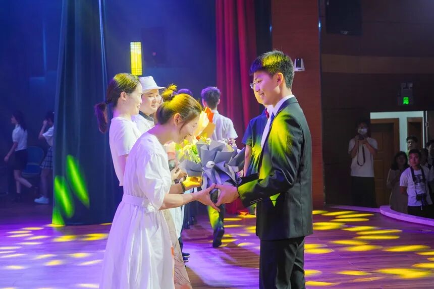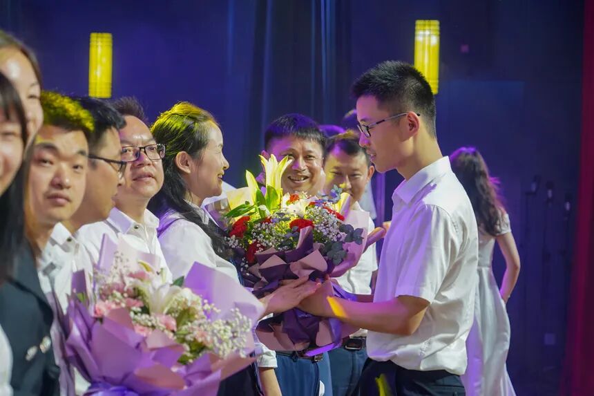 最后全体教师登台,学生代表纷纷送上鲜花,与老师们合影留念。仪式在感动与祝福中落幕。