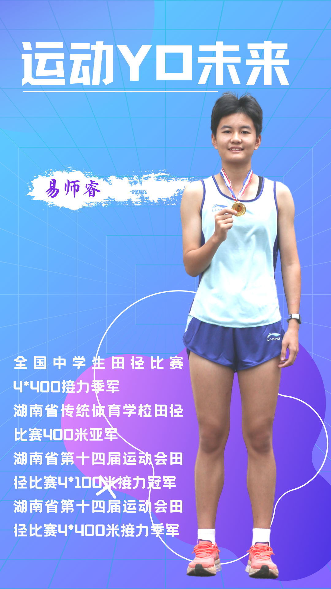湖南省第四届中学生田径比赛4*400米接力冠军。
