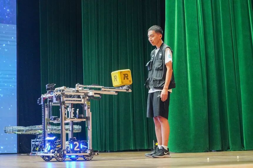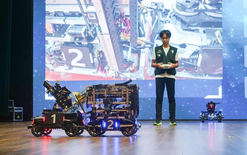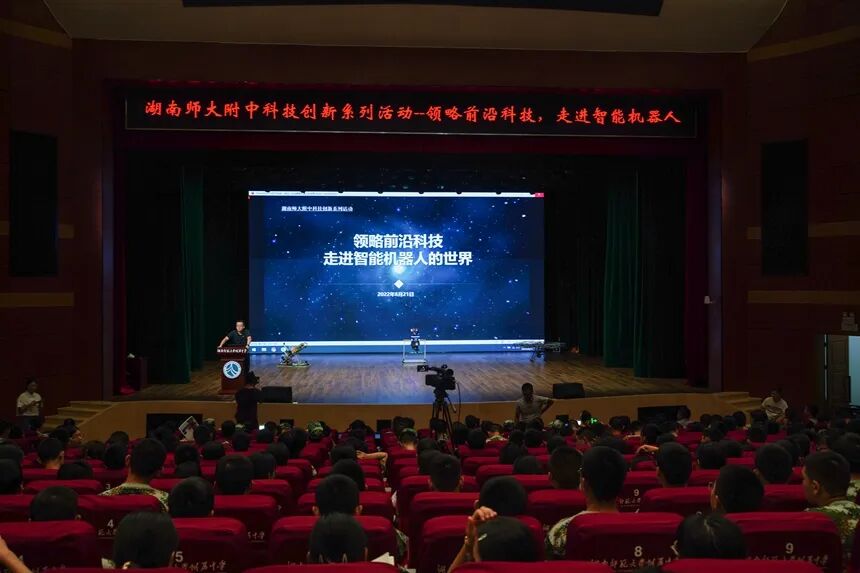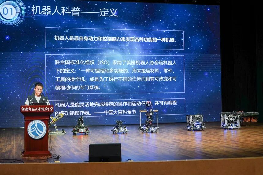 军训期间,学校邀请了中南大学智能机器人研发团队为高一新生普及前沿科技知识和展演各色机器人。