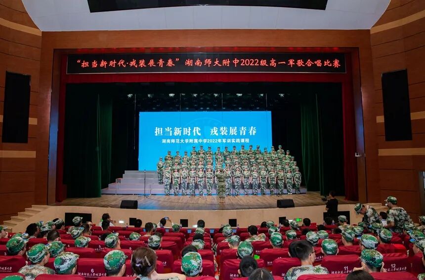 8月22日下午,“担当新时代 戎装展青春”2022级高一新生军歌合唱比赛在学生活动中心举行。《过硬的连队过硬的兵》拉开了本次比赛序幕。各连队还带来了《当祖国召唤的时候》《渴望光荣》《打靶归来》《强军战歌》《中国军魂》《当那天来临》《送你一枚小弹壳》《假如战争今天爆发》等大家耳熟能详的曲目。