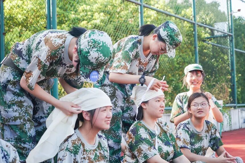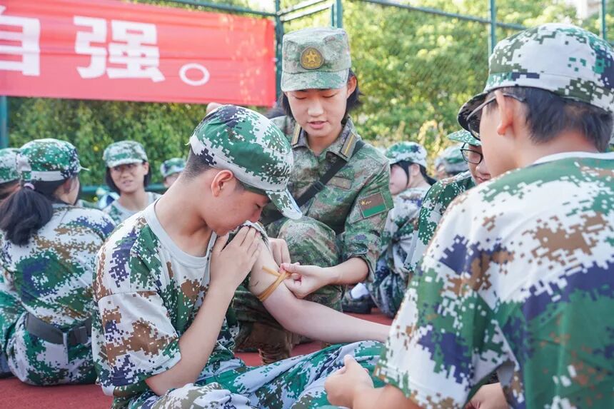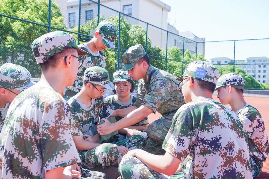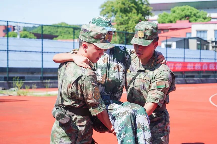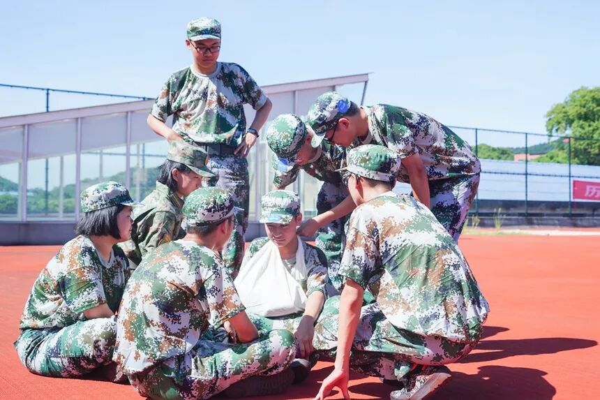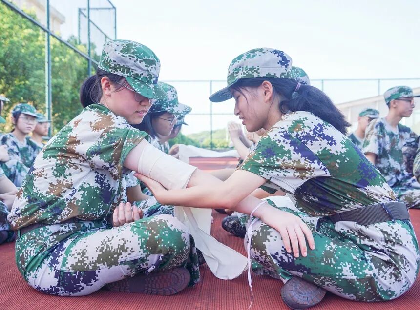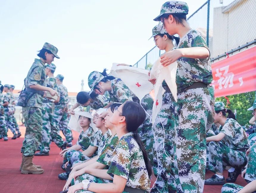 为普及应用救护知识,使新生学习和掌握应急救护技能,提高自救互救能力。军训期间进行了医疗救护知识培训,教官通过理论与实际相结合的方式,为大家讲解急救步骤以及外伤包扎、骨折固定、运送伤员等知识,同学们进行了实操演练,进一步提升了急救知识与技能。