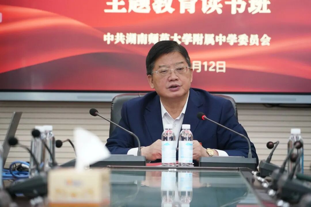 5月12日,湖南师范大学附属中学召开学习贯彻习近平新时代中国特色社会主义思想主题教育专题读书班开班式暨校党委理论学习中心组(扩大)专题学习会,在全校营造了浓厚的理论学习氛围。