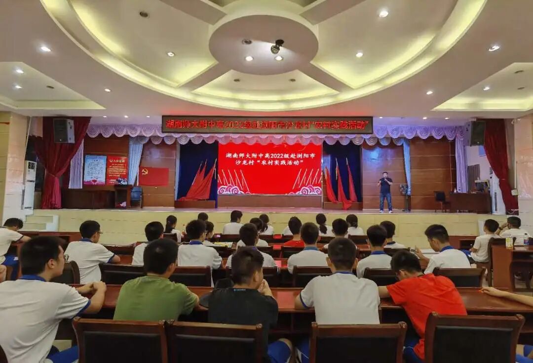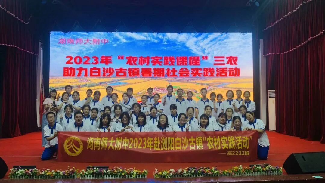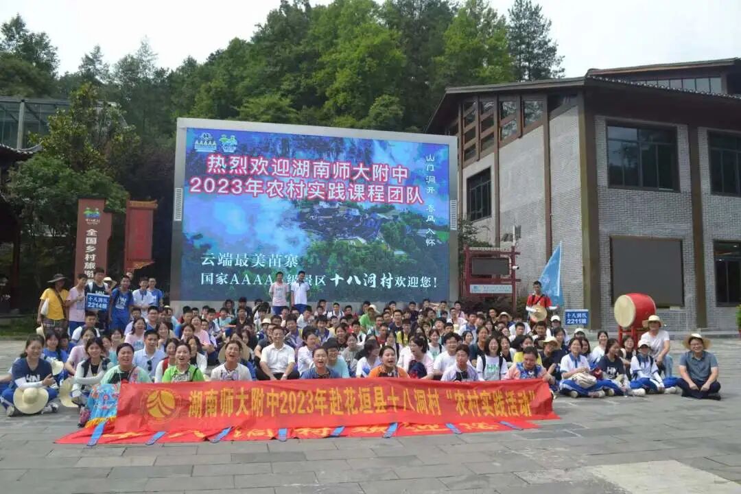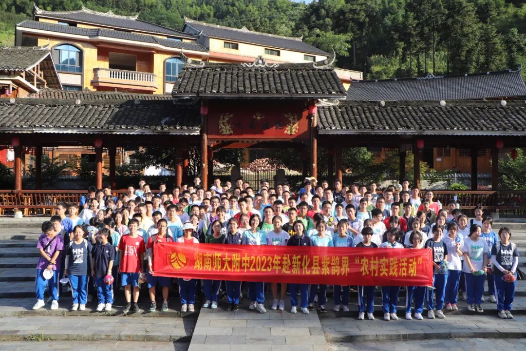 2023年7月9日,湖南师大附中高2022级一千二百余名学生分为十个小队,前赴新化县水车镇、衡山县店门镇、汝城县沙洲村、新宁县舜皇里、桑植县刘家坪镇、花垣县十八洞村、岳阳县鹿角镇、安化县冷市镇、浏阳市白沙古镇及沙龙村等十个地点开展为期一周的农村实践活动。