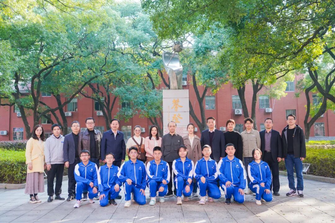 同学们与校领导、教练、班主任合影。