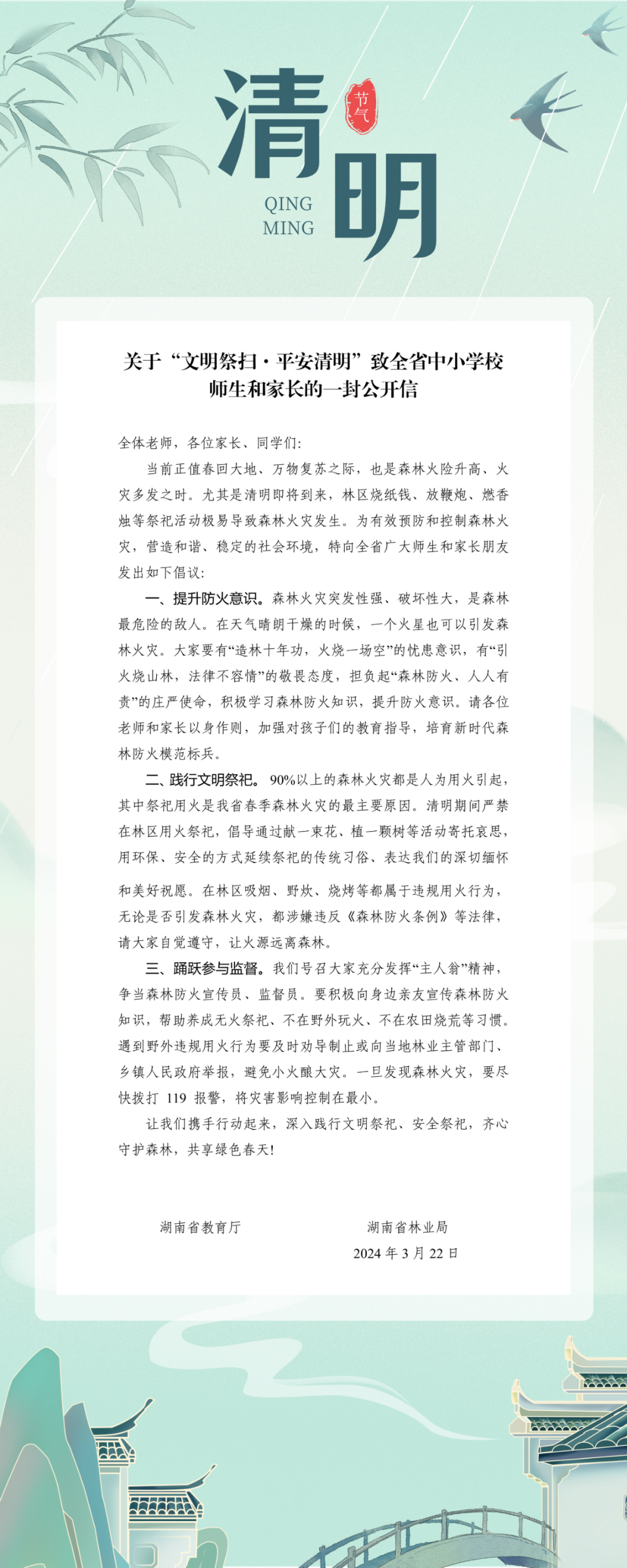 关于“文明祭扫 平安清明”致师生和家长的一封公开信