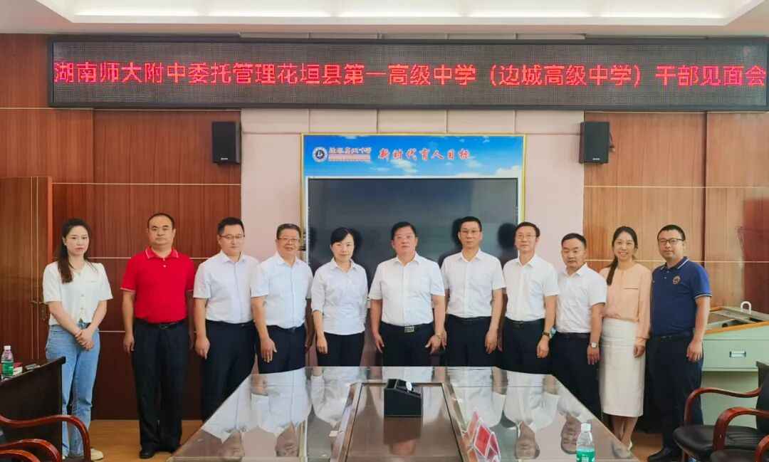 最后,黄月初讲话,对花垣县教育部门和花垣县第一高级中学的积极态度表示赞赏和感谢。他强调,我们要“认清意义”,以此次帮扶工作为契机,共同探索适合大湘西地区教育发展的新路径;要“珍惜缘分”,两校有着珍贵的校友渊源和深情厚谊,再度携手定会有更大的提升;要“踏实工作”,大家要转变观念,跟上形势,团结协作,务求实效;要“引领辐射”,派出的干部要以身作则,示范引领,把附中先进的办学理念传播到县域乃至大湘西地区。