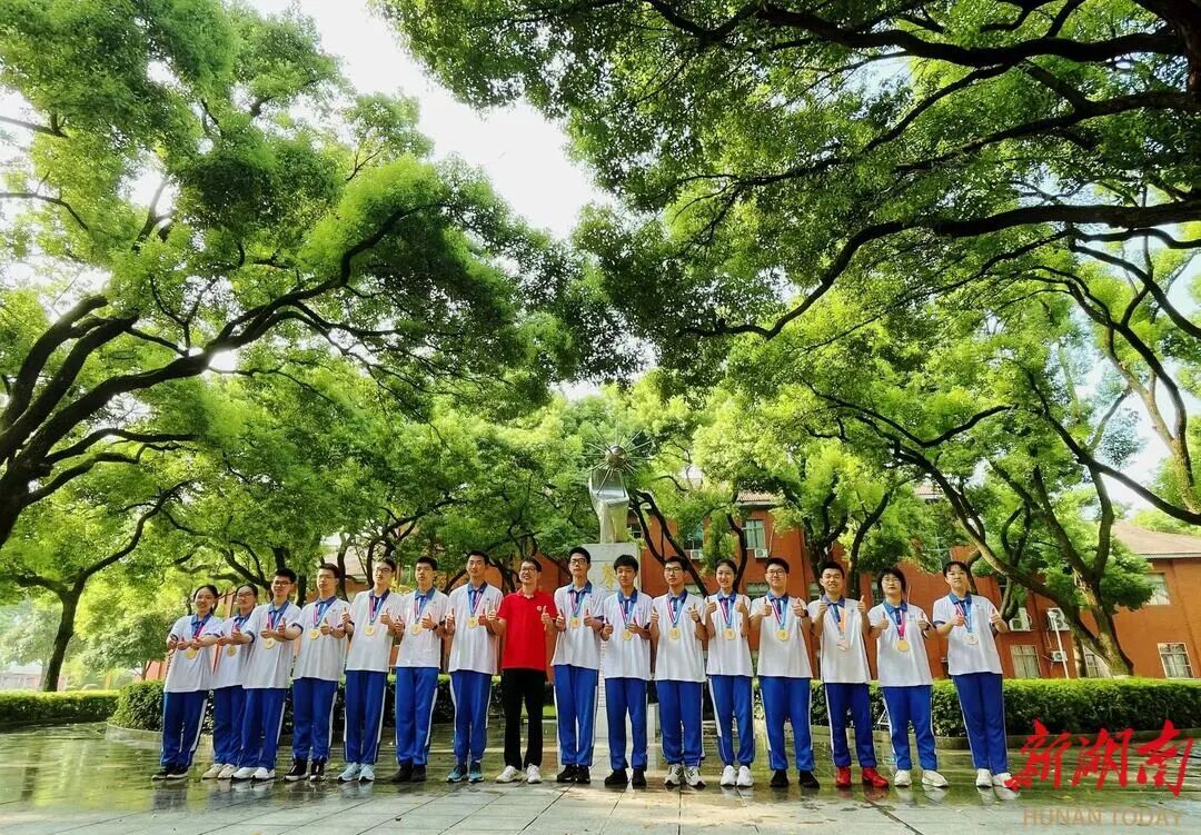 湖南师范大学附属中学的获奖选手与竞赛教练合影。