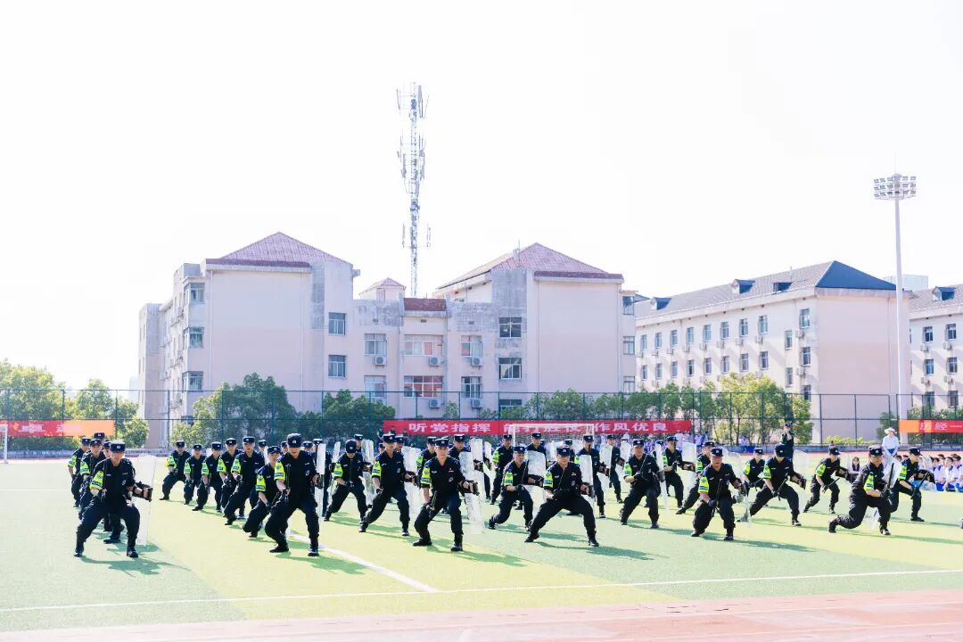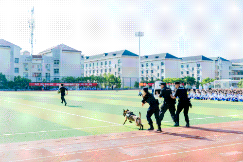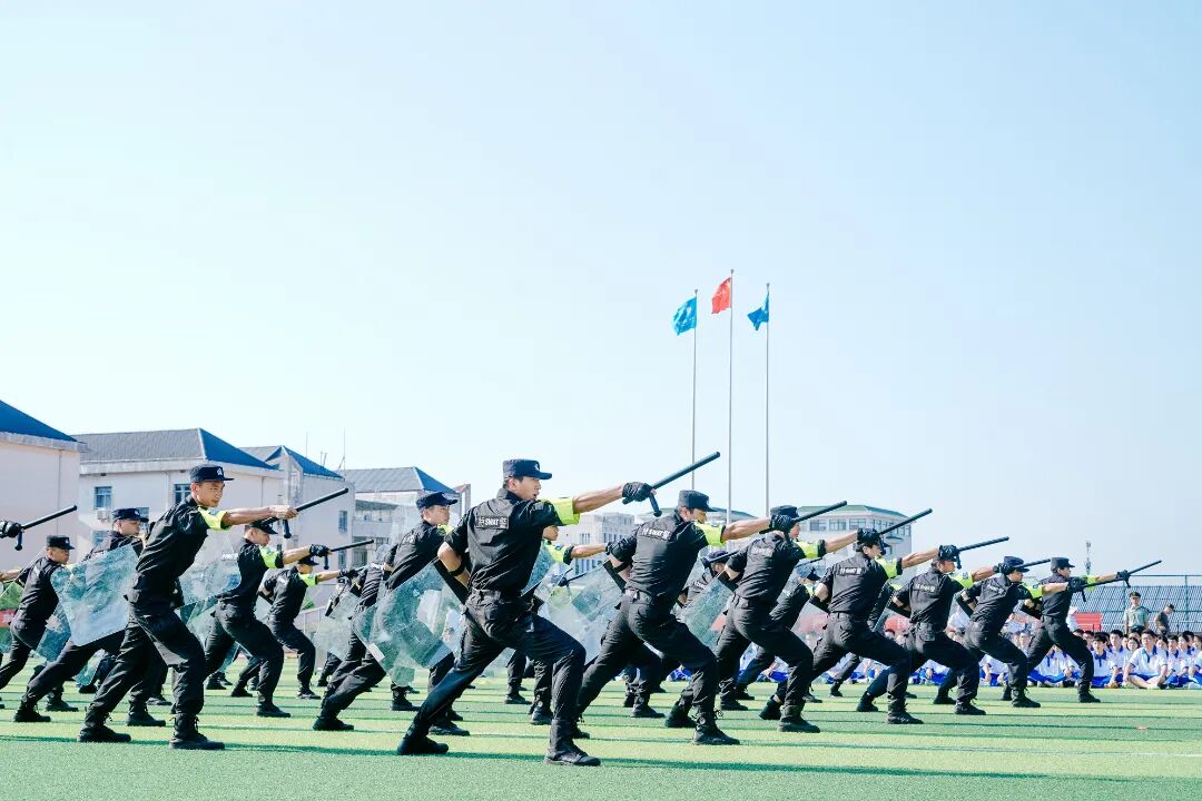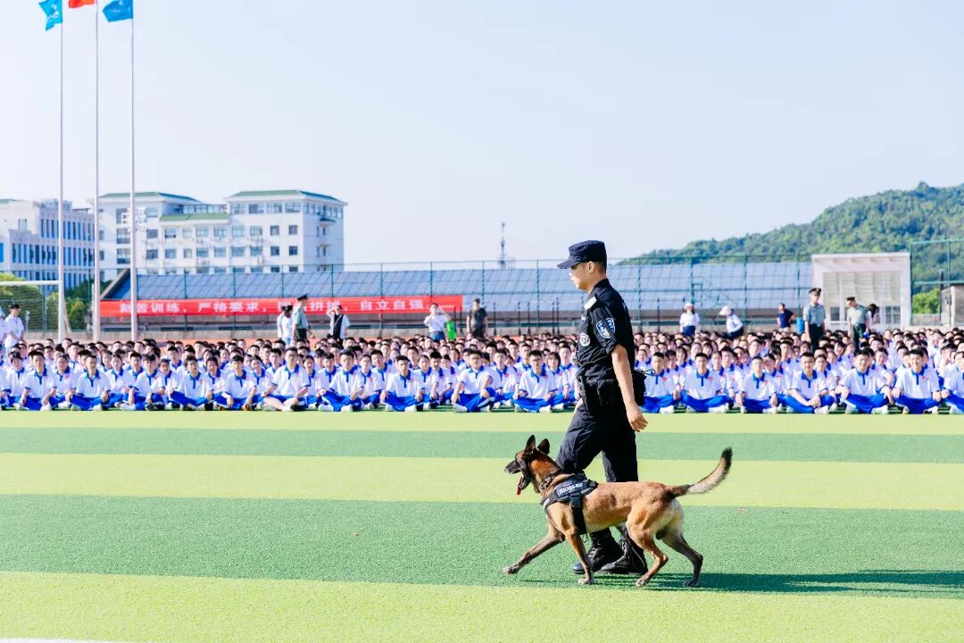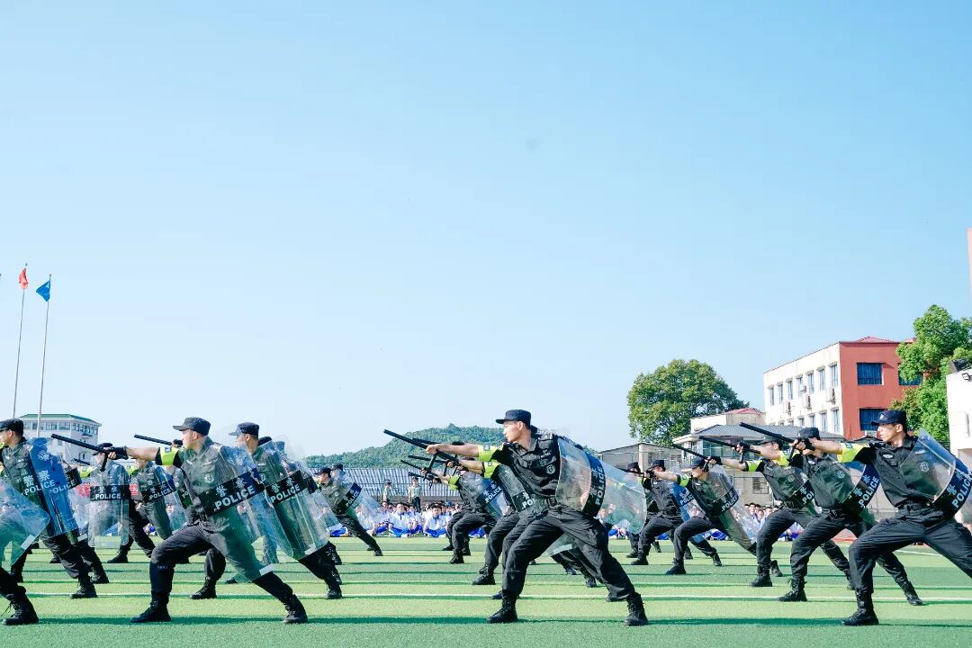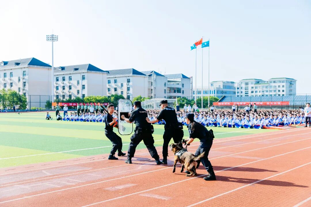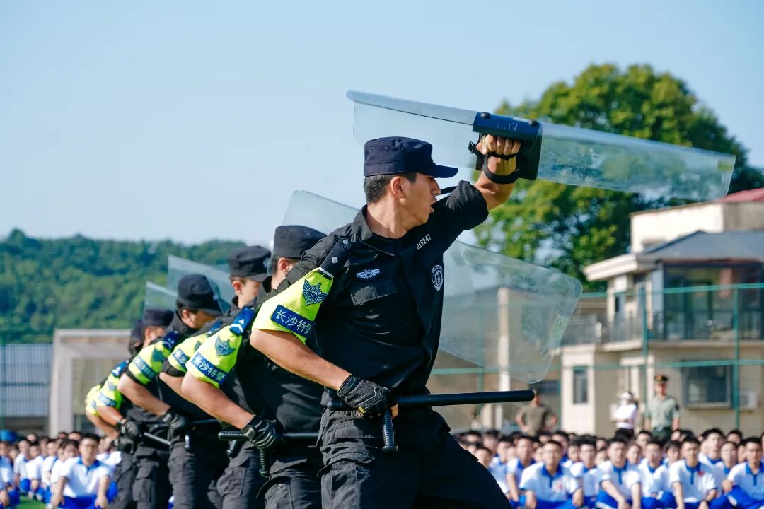 长沙市特警支队受邀亮相,以神犬奇兵、空中飞鹰及警棍盾牌操等专业技能展示,赢得了现场师生的热烈掌声与高度赞誉,充分展现了特警队伍的威武之姿与过硬实力。