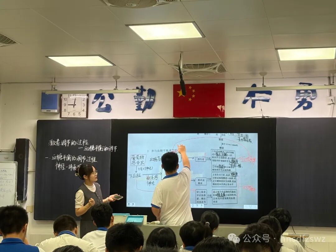 李慧老师以学生课前自主复习作业中出现的问题为靶点,引导学生修正基础知识误差,构建“血糖平衡调节过程”的概念模型,结合命题趋势和学生疑问,深入拓展胰岛素和胰高血糖素的作用机制,强化“因果搭桥法”,训练思维。此外,还特别在月考原题的基础上将糖尿病新药“智能胰岛素IA”治病机理进行“再研究”,专项训练学生逻辑推理和长句表达。