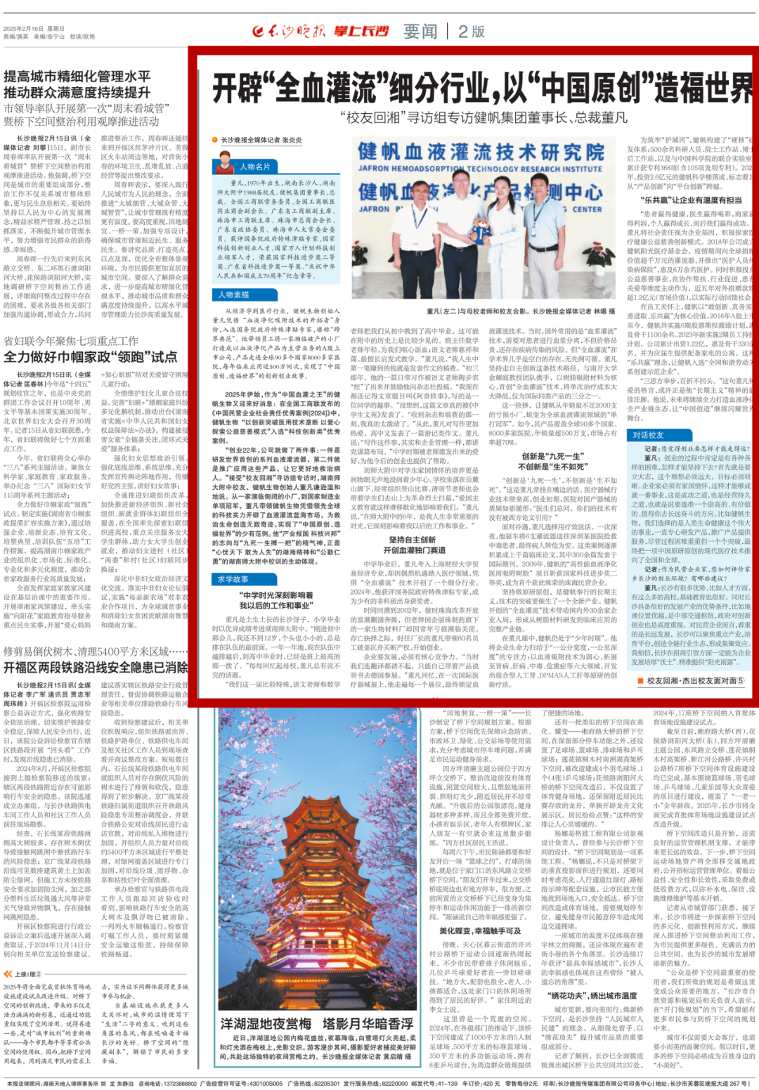 “创业22年,公司就做了两件事:一件是研发世界首创的系列血液灌流器,第二件就是推广应用这些产品,让它更好地救治病人。”接受“校友回湘”寻访组专访时,湖南师大附中校友、健帆生物创始人董凡谦逊温和地说。从一家濒临倒闭的小厂,到国家制造业单项冠军,董凡带领健帆生物凭借领先全球的科技实力开辟了血液灌流蓝海市场,为救治生命创造无数奇迹,实现了“中国原创、造福世界”的少有范例。他“产业报国 科技兴邦”的志向与“九死一生搏一把”的精气神,正是“心忧天下 敢为人先”的湖湘精神和“公勤仁勇”的湖南师大附中校训的生动体现。