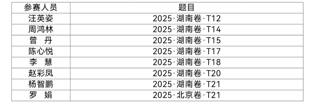 八位选手们分别从2025年高考卷中选择一道真题,从试题立意、试题解法、试题拓展和试题启示等多个维度展开说题。具体说题顺序如表所示: