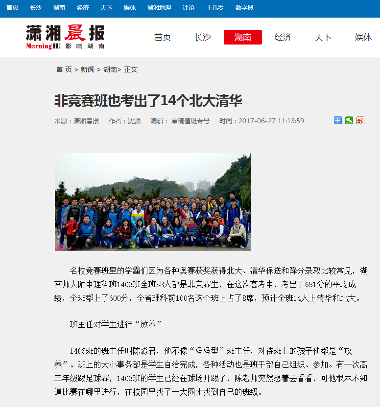 【潇湘晨报】非竞赛班也考出了14个北大清华