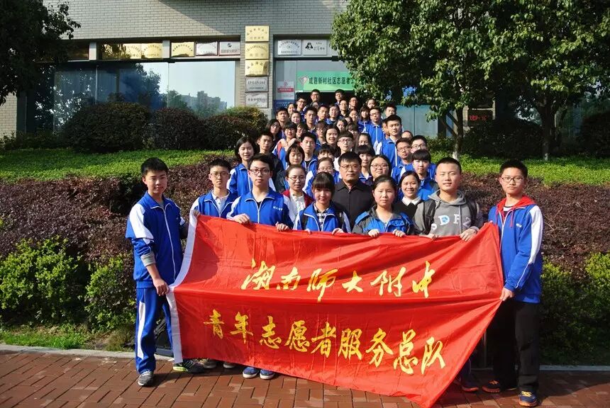 麓山脚下,湘水畔边,有一抹纯净而又青春的蓝色。那抹蓝,就是湖南师大附中的青年志愿者们,我们还有一个可爱亲切的名字:蓝精灵。