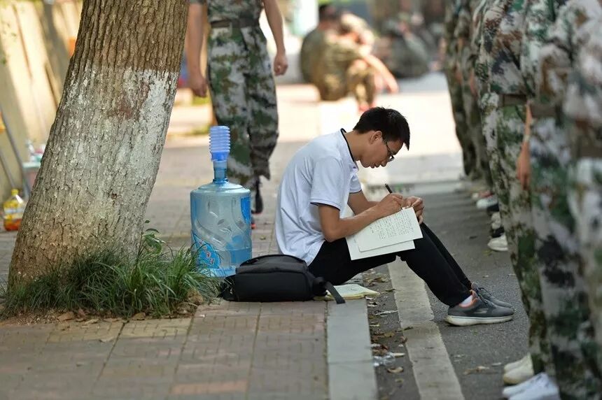 烈日炎炎下,汗珠顺着发丝淌过脸庞,滴落在滚烫的水泥地上,淌出的是坚强的河。
