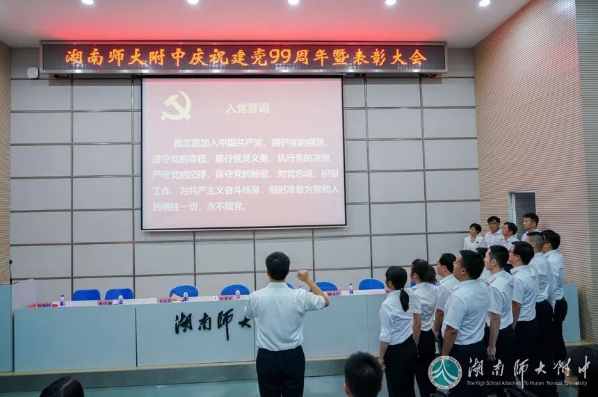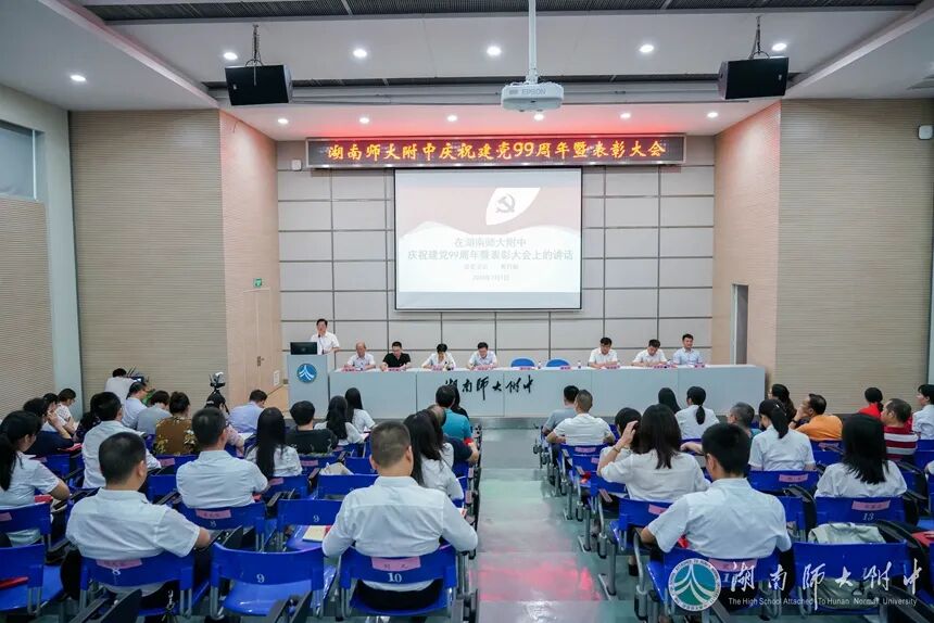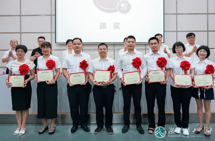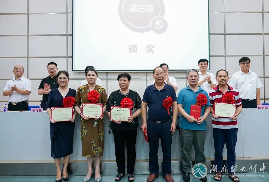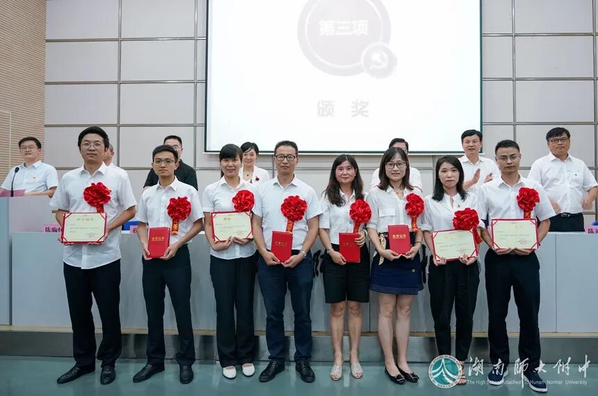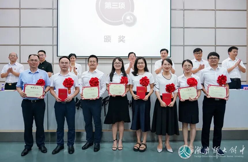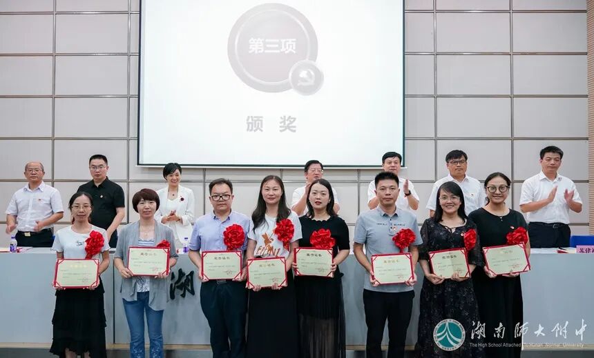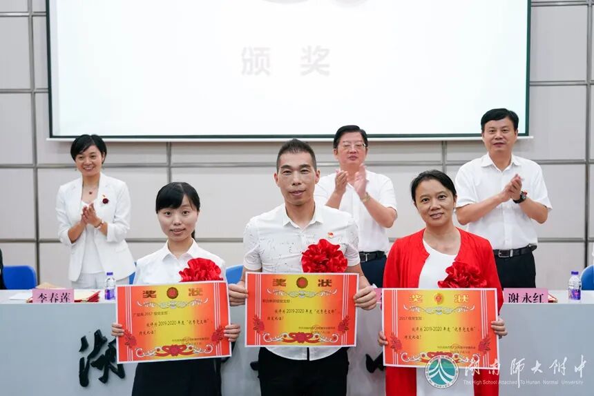 党委委员、校长谢永红宣读了《湖南师大附中关于表彰2019—2020学年度优秀党支部、优秀共产党员和党务工作示范岗的决定》,获奖的集体代表和个人依次上台领奖。
