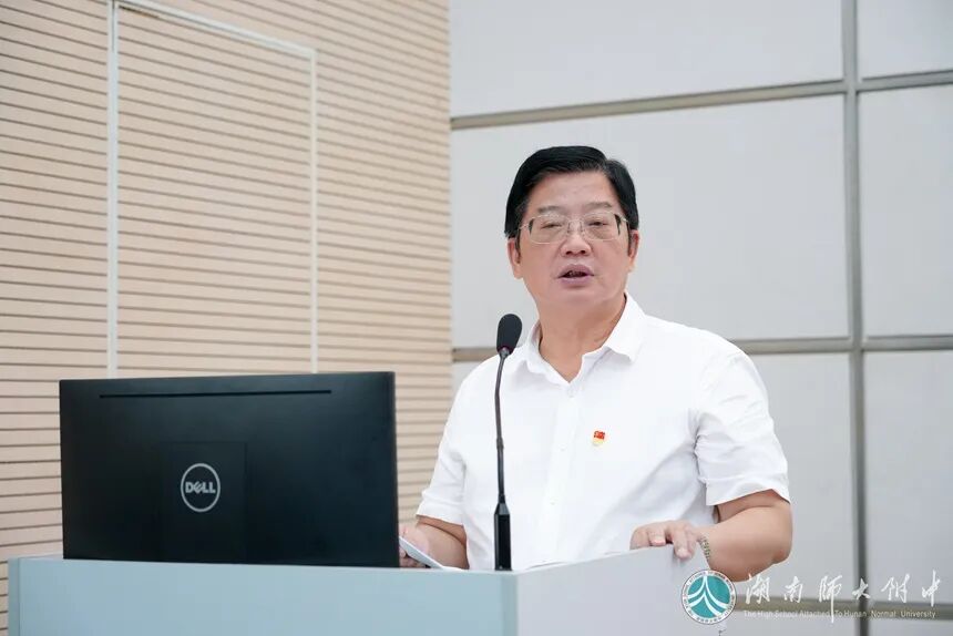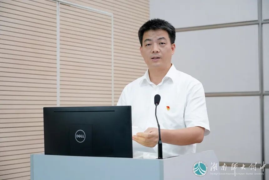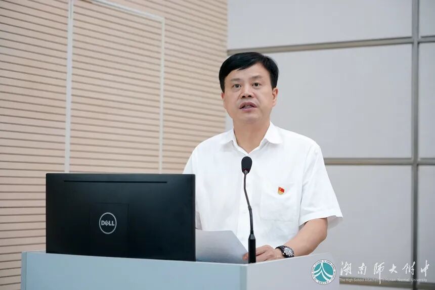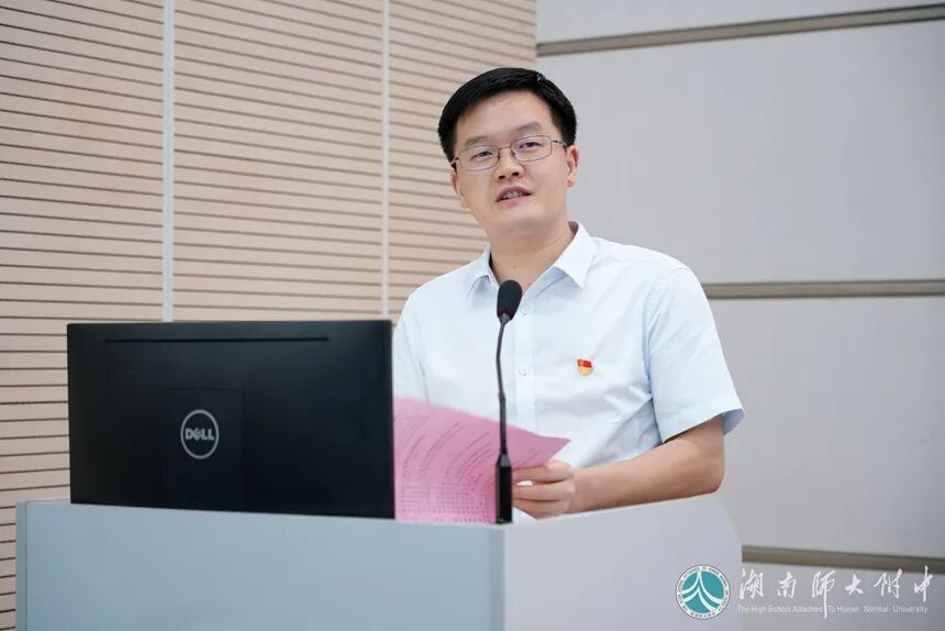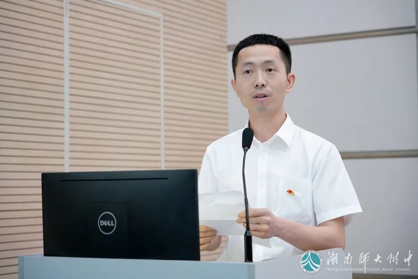 湖南师大附中优秀共产党员代表、优秀党支部——联合教研党支部书记汤彬发言。他从“全面加强党的建设”、“全面推进教育工作”、“全面提升组织服务”等方面介绍了联合教研党支部在教育、教学、科研等领域所取得的可喜成绩和宝贵经验,充分体现了党员同志在组织中发挥的战斗堡垒和先锋模范作用,并表示要不断增强支部的凝聚力,以优秀来影响更多的人,让大家携起手来为附中更美好的明天添砖加瓦。