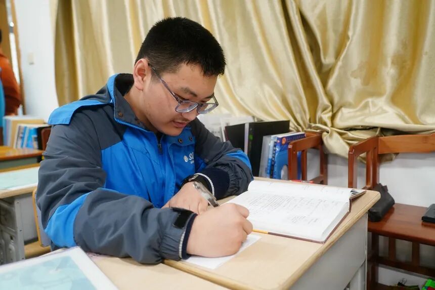 陈茁卓说自己是个有“强迫症”的人,制定好的学习计划必须“当日事当日毕”。即使是从早上7点半在教室一直“扎”到深夜11点半,他也不觉疲惫。